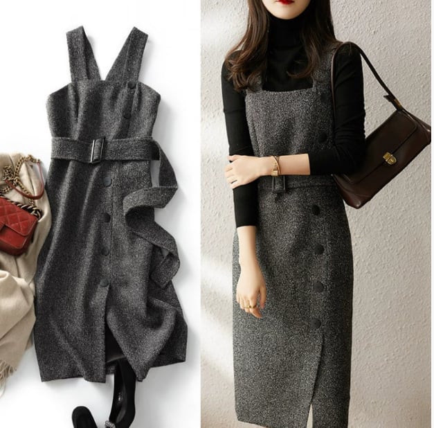 XLサイズ:バスト100cm、着丈82cm、肩紐の長さ20cm、総丈102cm、ウエスト92cm(ベルト付き)
