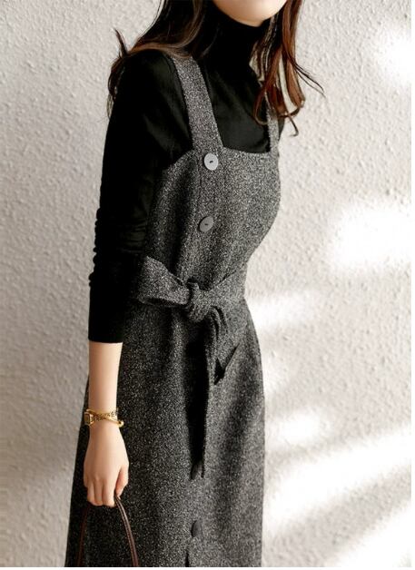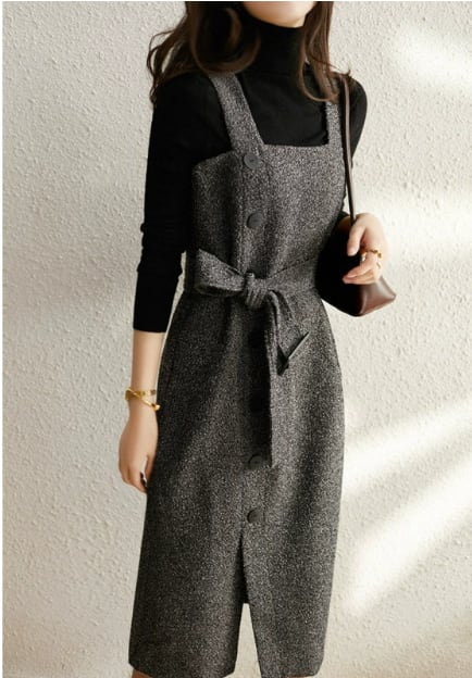 Lサイズ:バスト96cm、着丈82cm、肩紐の長さ19cm、総丈101cm、ウエスト88cm(ベルト付き)