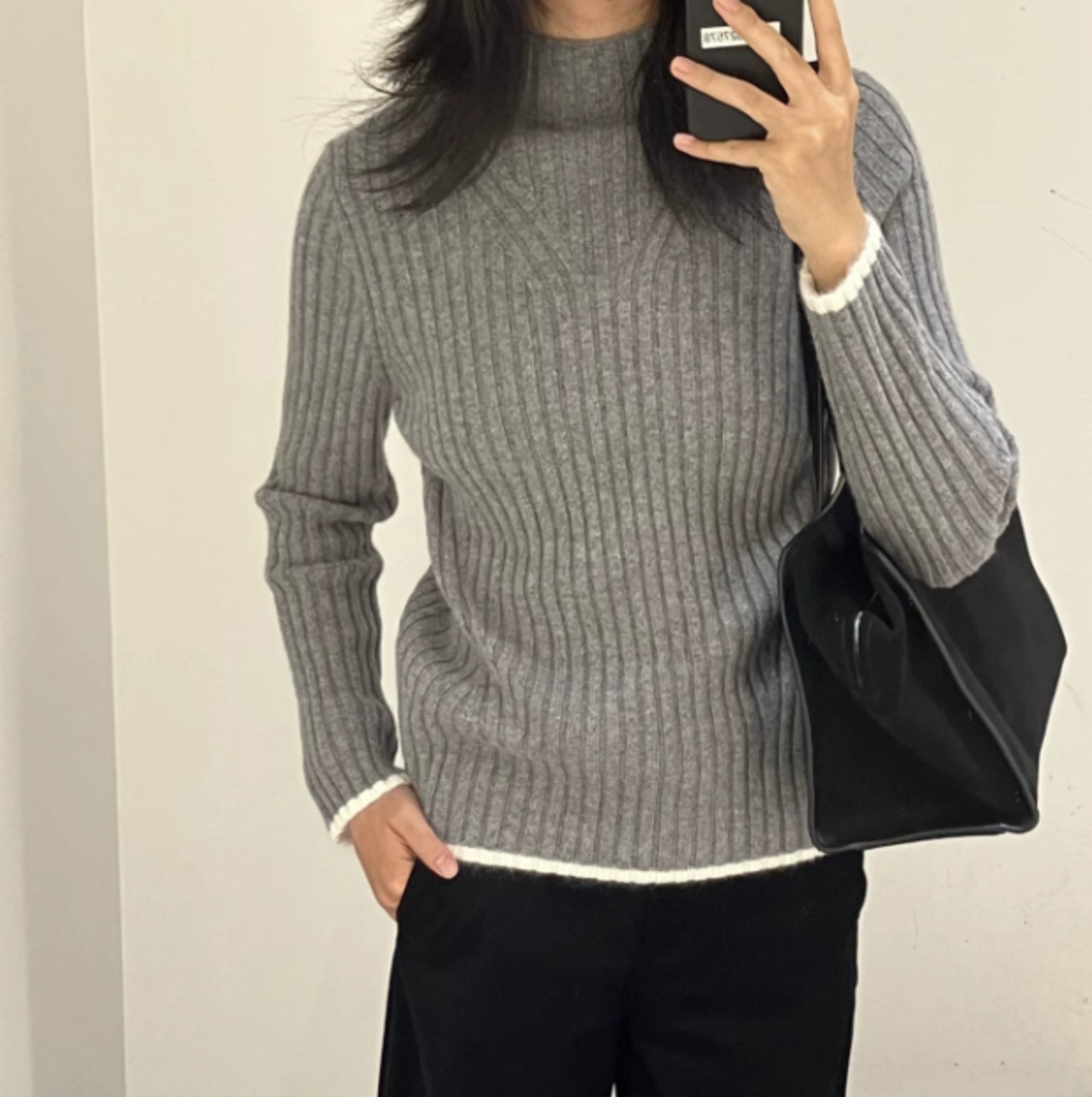 スリムフィット リブ タフトネック ニットセーター 1020