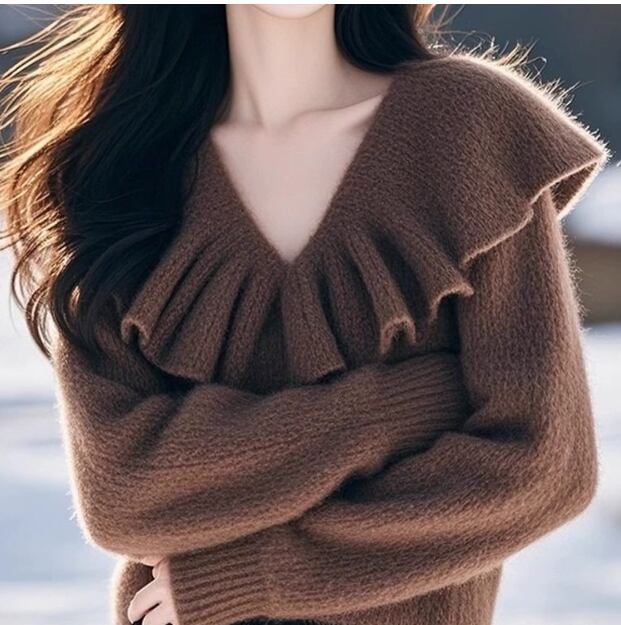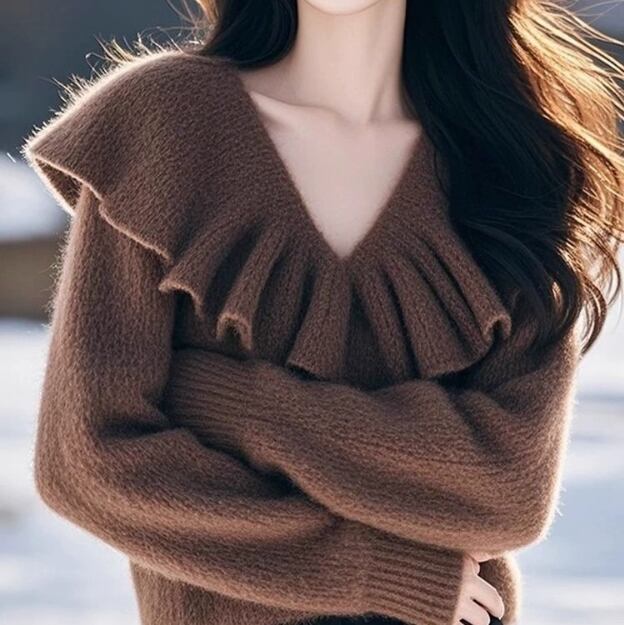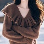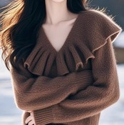 ひらひらVネック長袖ニット 1043