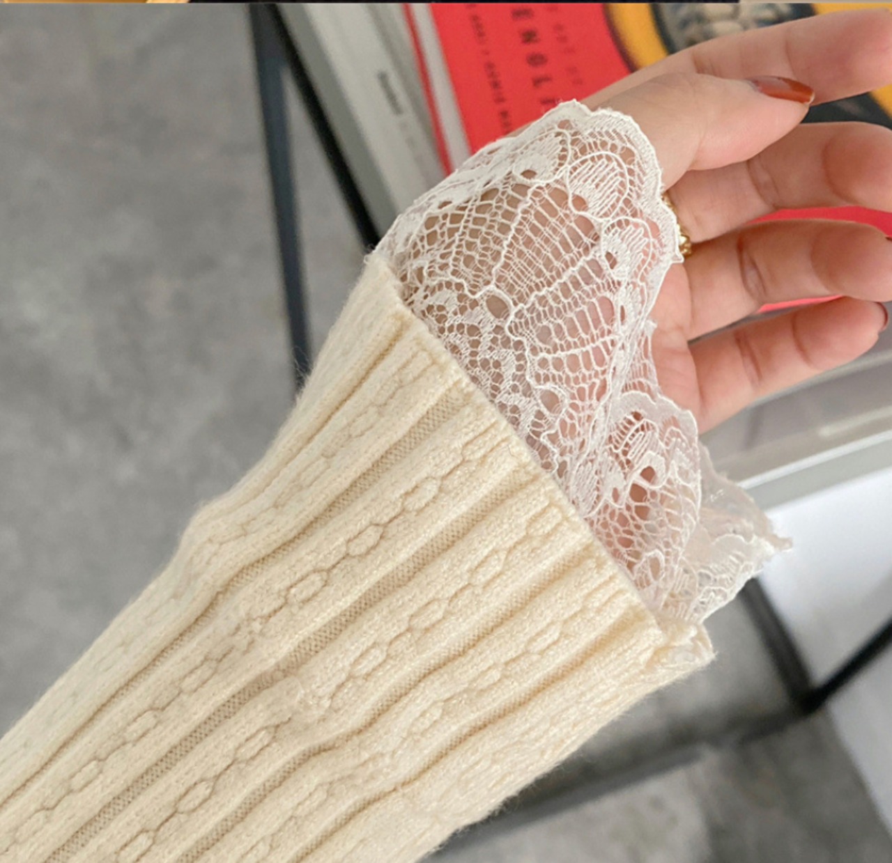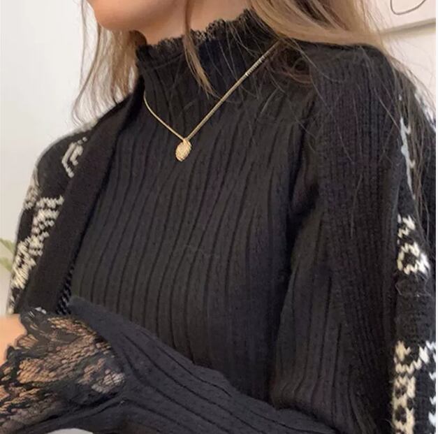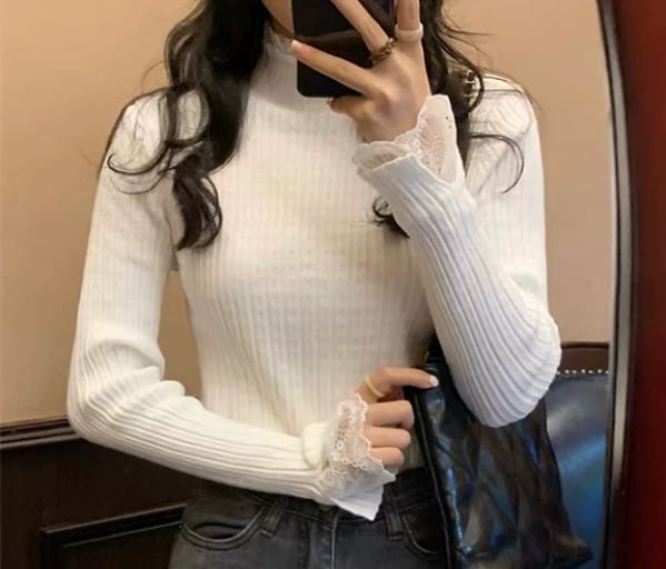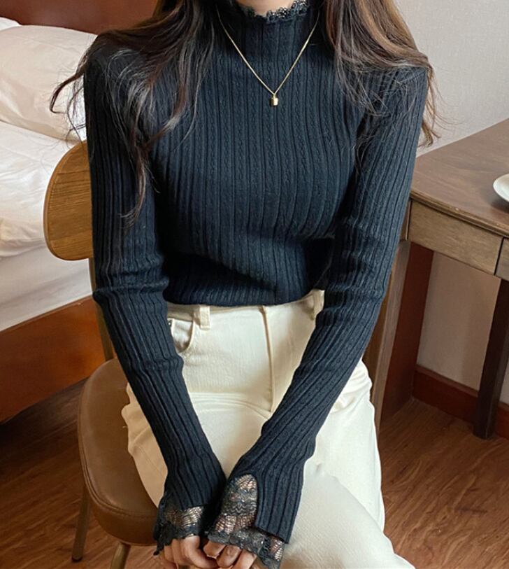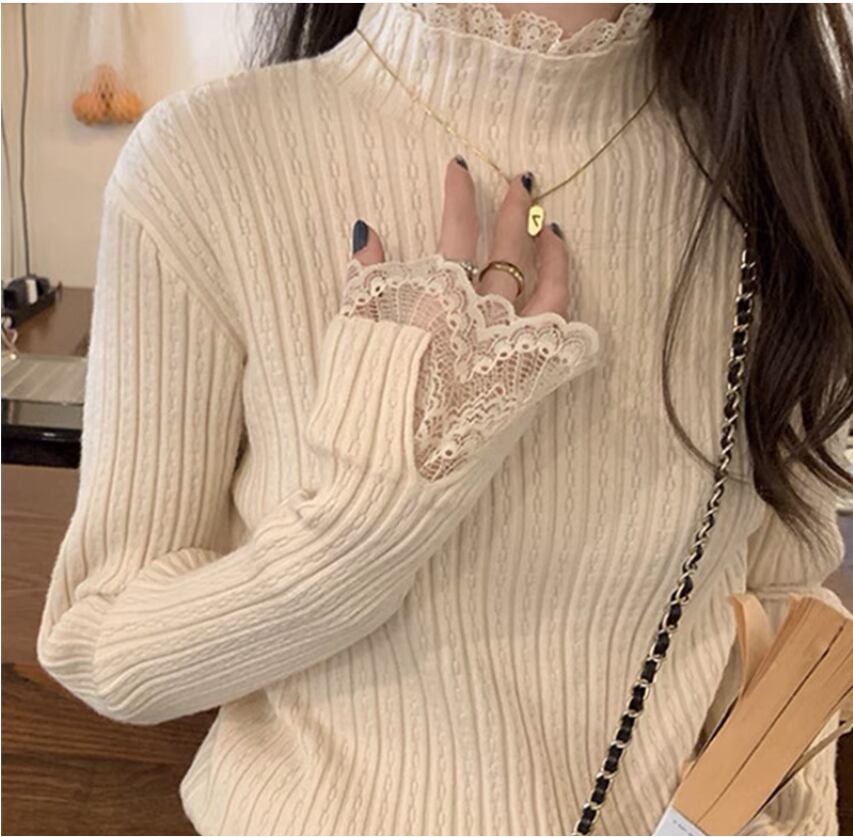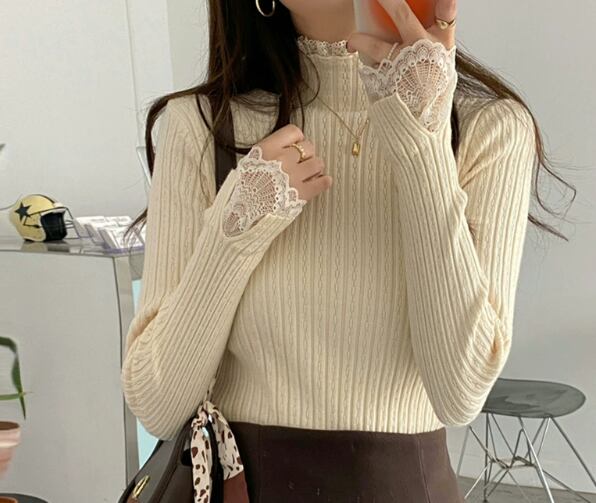 レースのニットプルオーバーセーター 1045